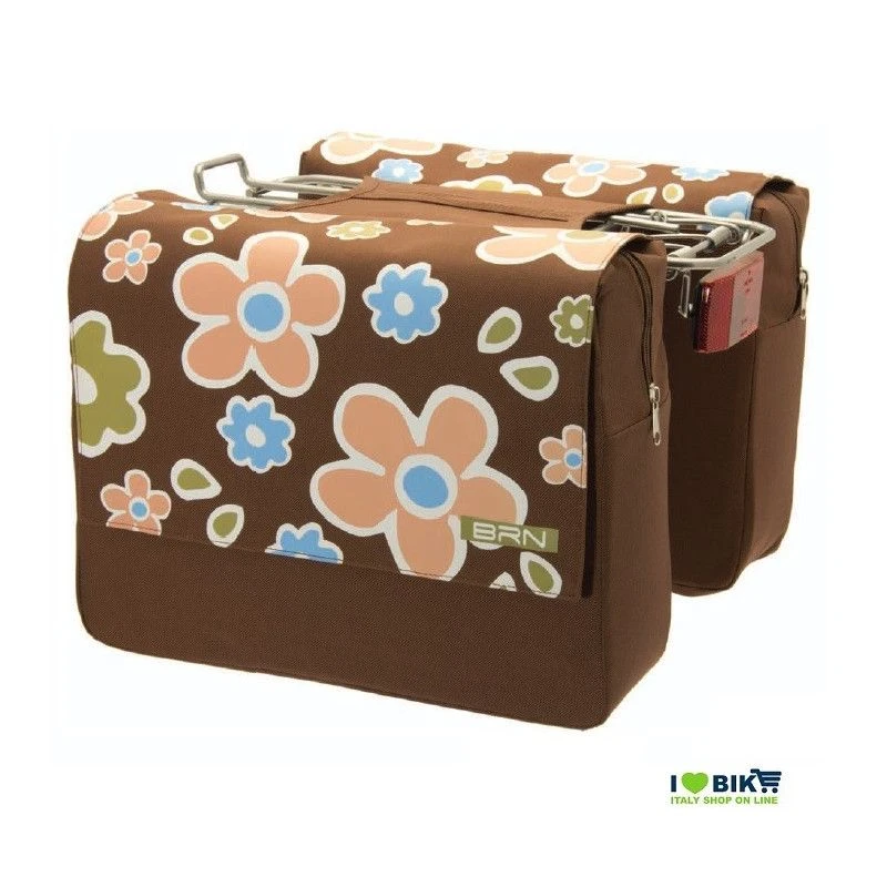 Coppia Borse per bicicletta posteriori a fiori marroni.