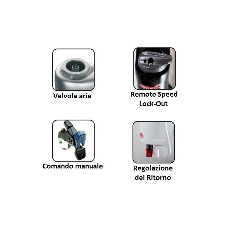 – Accessori: asse QLC 15mm incluso, Lockout attraverso il comando remoto posto sul manubrio, ritorno regolabile
